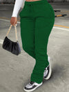 LW Plus Size Plain Pocket Sweatpants Mid Waist Drawstring Ruched Women Pants Stacked Trousers Sporty Casual Daily Bottoms