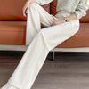 Women's Silk Pants Lady Summer Loose Commuting Straight Leg Pants High Waist Trousers Thin Knitwear Solid Color Bottoming Pant