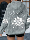 Plus Size Women Clothing Waffle Knit Tops For Women Lotus Flower Pattern Print Oversize Hoodies for Women With Pocket Sweatshirt
