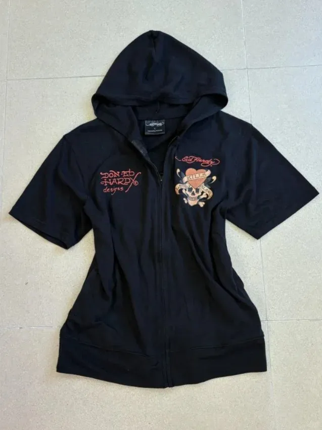 Summer Short sleeved Hoodie Zipper Gyaru Subculture Streetwear Hooded Hip Hop Y2k Clothes Grunge Harajuku Hot Girl Blouse