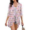 Women's Lightweight Floral Print Half Sleeve Blouse Shirts Thin Coat Cardigan Lively with Pocket