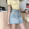 Trend Women's Y2K Jeans Skirt - Dongdaemun Style Chain Detail High Waist Blue Denim A-Line Skirt Slimming Versatile 2682