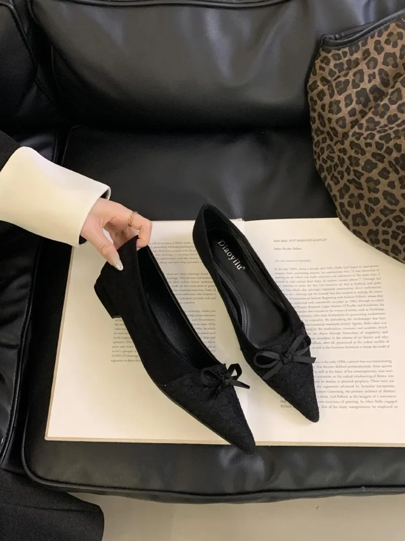 Leopard Print Pointed Toe Lace Bow Mules Shoes Fashion Sexy Elegant Office Women Shoes Autumn Suede Shallow Flat Shoes for Women