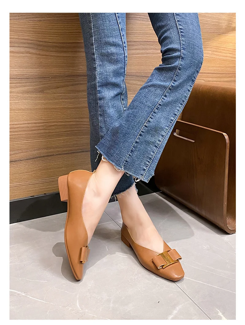 Women's Single Shoes Summer New Low Heel Square Head Metal Decorative Oxford Shoes Fashion Comfortable Soft Soled Leather Shoes