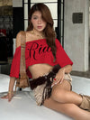 Nibber Loose Letter Print Mini t-Shirt Women Summer Trend Biased Collar Versatile Street Skinny Simple Classic Party Daily Tops
