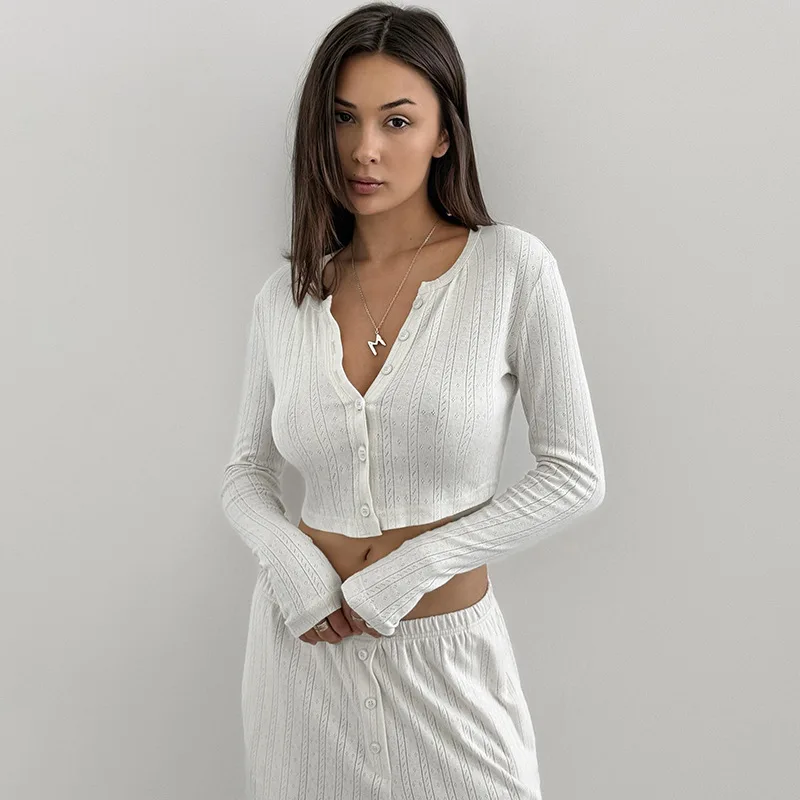 Absobe Pajamas Homewear Hollow Pants Casual Suit Women's Matching Sets Buttons Crop Cardigan Top Loose Trousers Autumn New