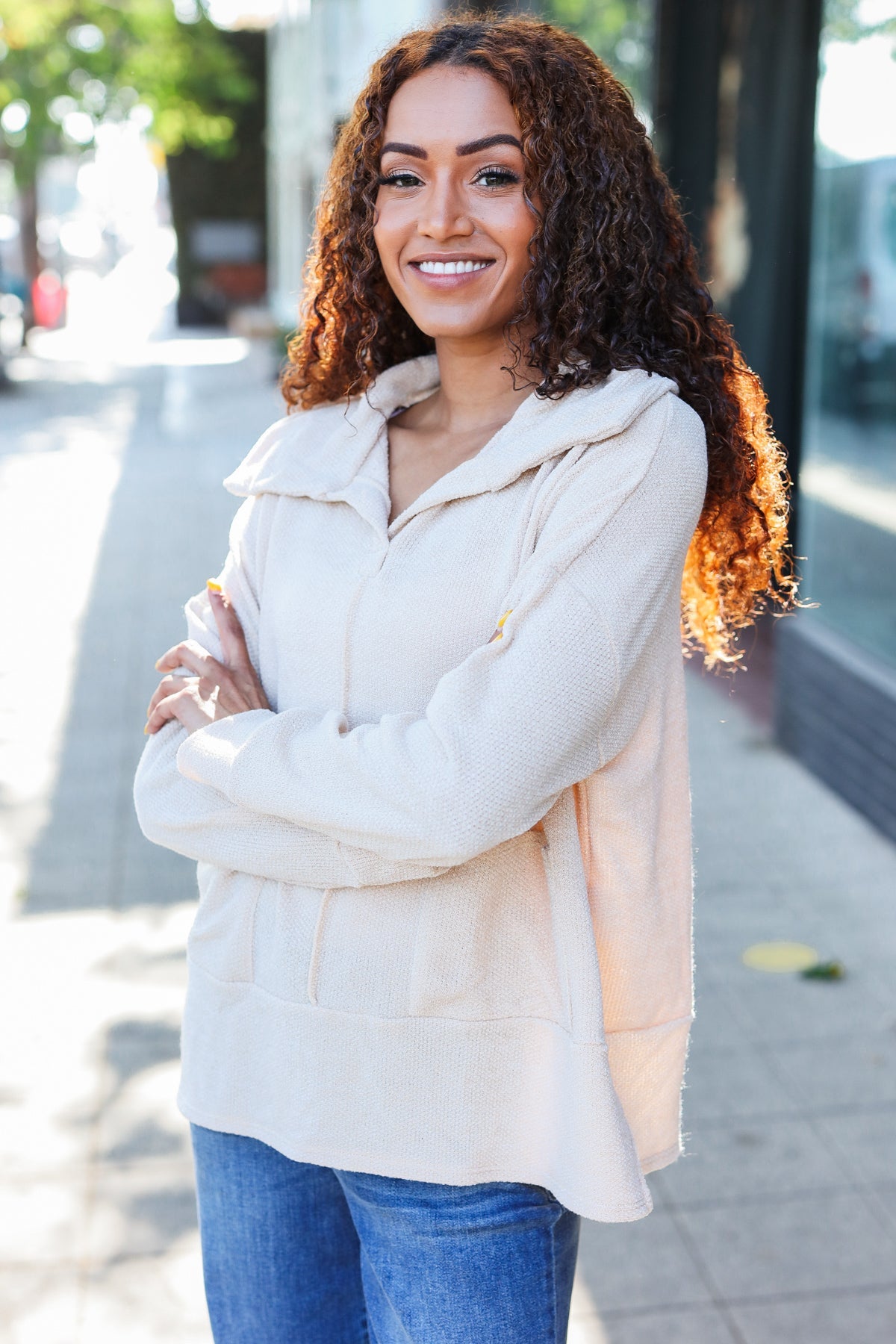 Easy Living Oatmeal Textured Knit Notch Neck Oversized Collar Sweater