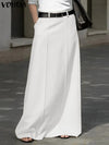Plus Size 5XL Women Elegant Maxi Skirts Solid Color Skirt VONDA Fashion Pleated Casual Loose Pockets High Waist Bottoms