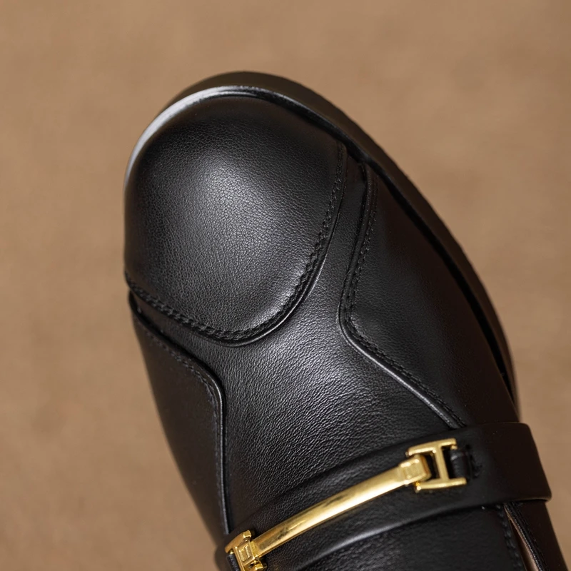 Women's new leather, cowhide, metal accessories, round toe, low heel, comfortable, plus size single shoes, casual shoes