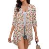 Women's Thin Half Sleeve Floral Print Lightweight Blouse Shirts Coat Cardigan Edgy with Pocket